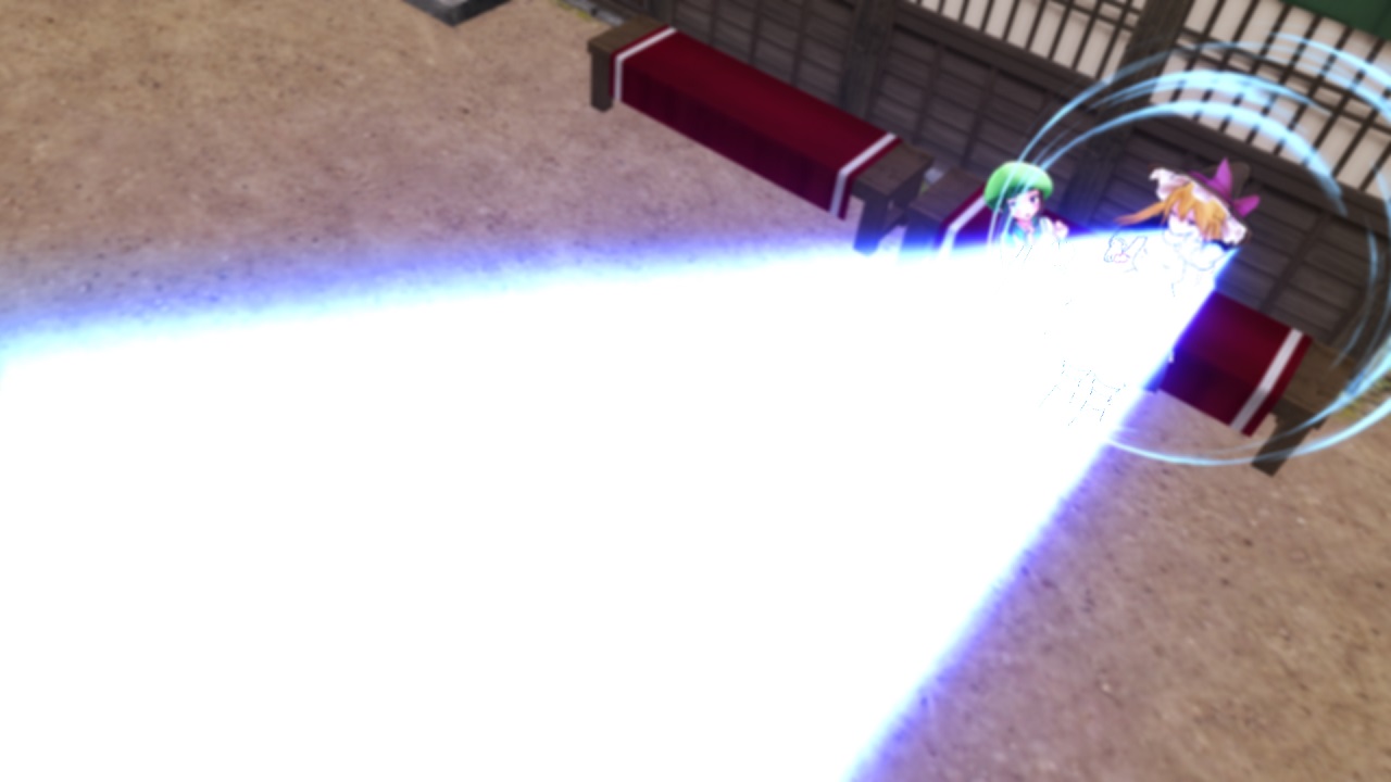 これが上の魔理沙の画から続くシーン。右側に魔理沙がいることが共通しているため、誰がどこにいるのか混乱しにくくなるわけですね。