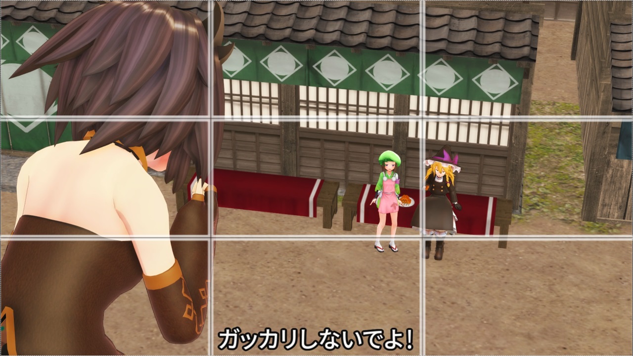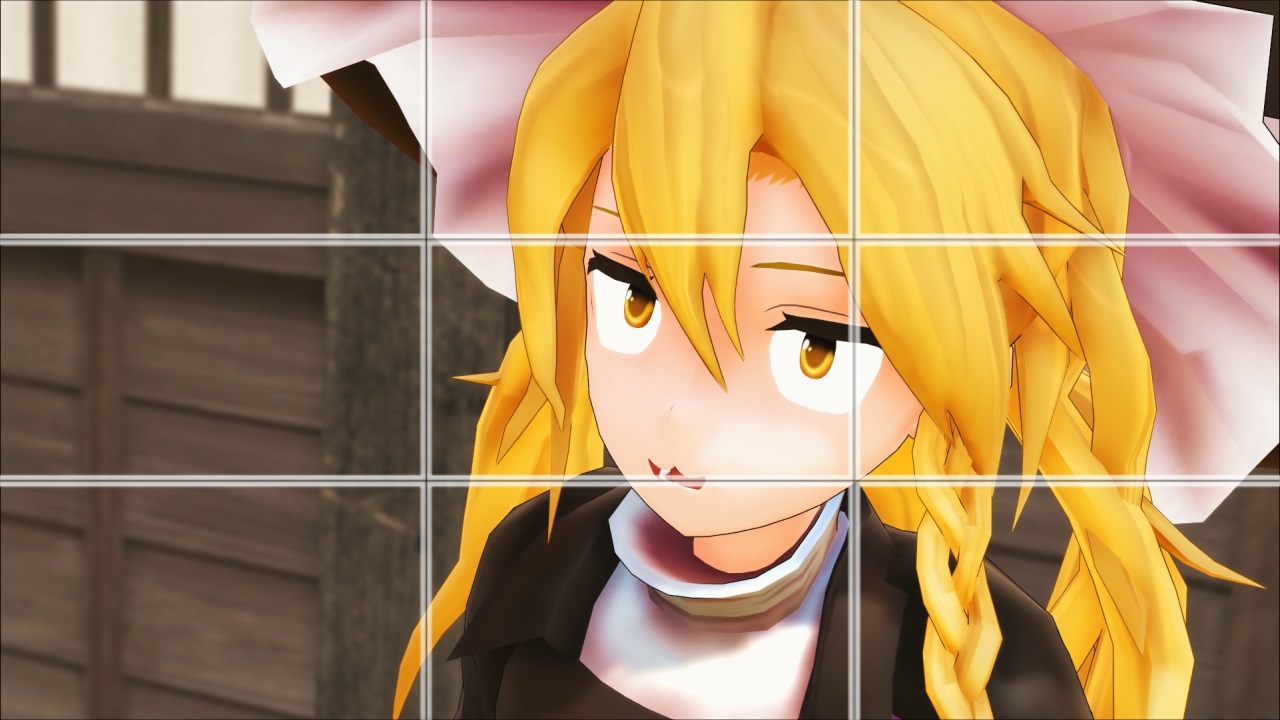 たとえば上の図では左側の交点近くにレプティが、右側の交点に霊夢と夢想封印オーラが配置されています。交点を意識してモノを配置すると、映したいものが強調されるうえに画面が整理される傾向があります。