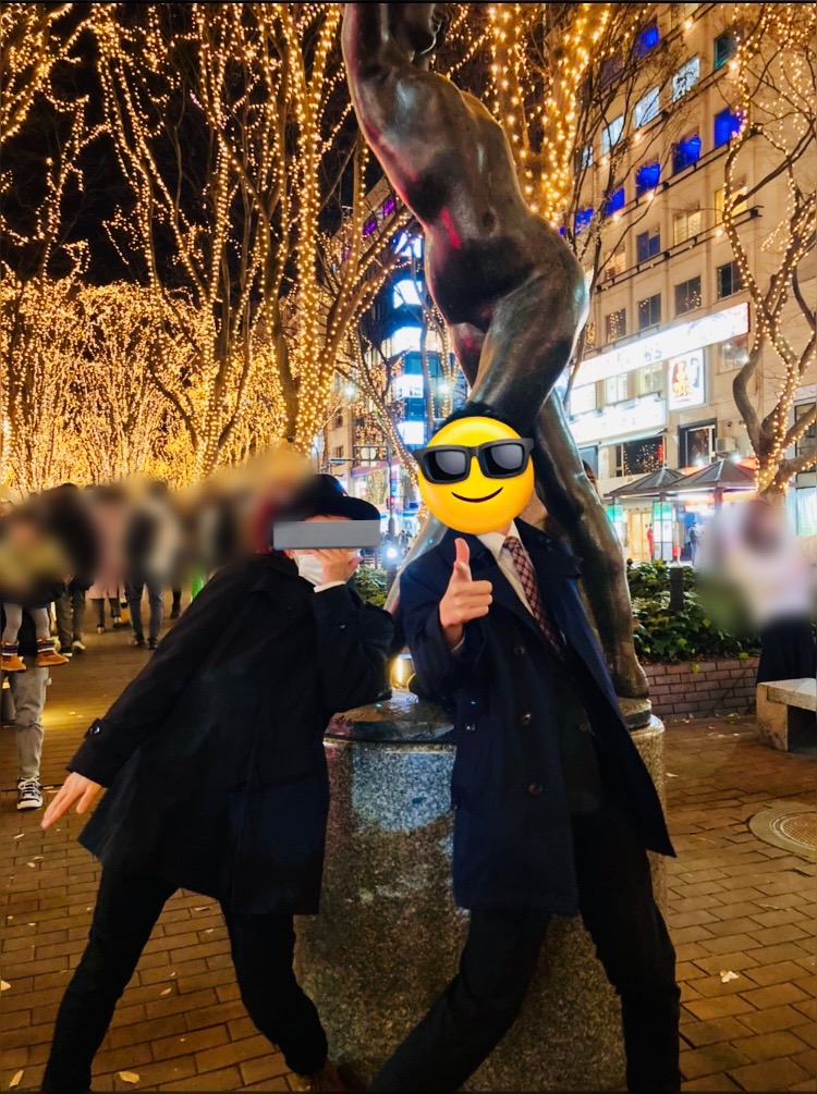 これは仙台のジョジョ立ち石像に負けじとジョジョ立ちしたシノディと私。撮影した村井らいがめちゃくちゃ呆れた顔してました。いつまで経っても男子はアホ。